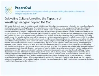 In essence, this piece not only unveils the functional aspects of wrestling headgear but also paints a vivid picture of its cultural significance within the rich tapestry of wrestling. It is a celebration of safety, identity, and fairness, presenting headgear as a brushstroke in the masterpiece that defines the dedication and artistry of the sport. Also at PapersOwl you can find more free essay examples related to Culture.
