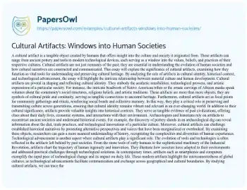 Cultural Artifacts: Windows into Human Societies. (2025, Mar 28). Retrieved from https://hub.papersowl.com/examples/cultural-artifacts-windows-into-human-societies/