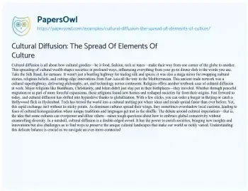 Cultural Diffusion: The Spread Of Elements Of Culture. (2024, Apr 22). Retrieved from https://hub.papersowl.com/examples/cultural-diffusion-the-spread-of-elements-of-culture/
