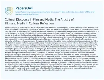 Cultural Discourse in Film and Media: The Artistry of Film and Media in Cultural Reflection. (2024, Mar 01). Retrieved from https://hub.papersowl.com/examples/cultural-discourse-in-film-and-media-the-artistry-of-film-and-media-in-cultural-reflection/