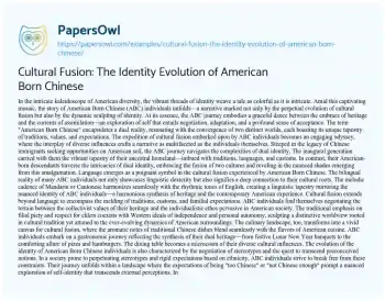 Cultural Fusion: The Identity Evolution of American Born Chinese. (2024, Mar 12). Retrieved from https://hub.papersowl.com/examples/cultural-fusion-the-identity-evolution-of-american-born-chinese/