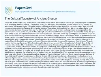 The Cultural Tapestry of Ancient Greece. (2019, Dec 02). Retrieved from https://hub.papersowl.com/examples/culture-ancient-greece-and-the-odyssey/