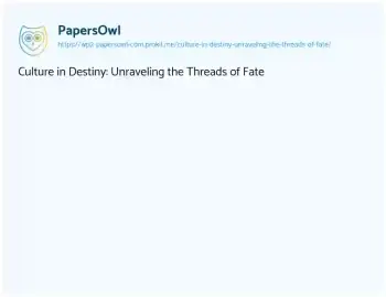 Culture in Destiny: Unraveling the Threads of Fate. (2024, Jan 26). Retrieved from https://hub.papersowl.com/examples/culture-in-destiny-unraveling-the-threads-of-fate/