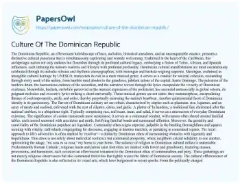 Culture Of The Dominican Republic. (2024, Apr 22). Retrieved from https://hub.papersowl.com/examples/culture-of-the-dominican-republic/