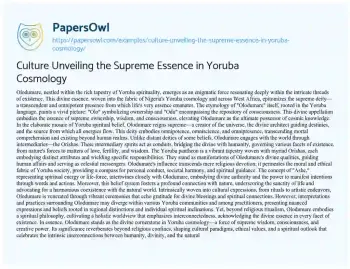 Culture Unveiling the Supreme Essence in Yoruba Cosmology. (2023, Dec 28). Retrieved from https://hub.papersowl.com/examples/culture-unveiling-the-supreme-essence-in-yoruba-cosmology/