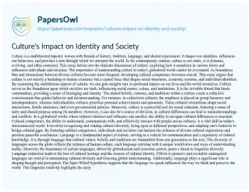 Culture’s Impact on Identity and Society