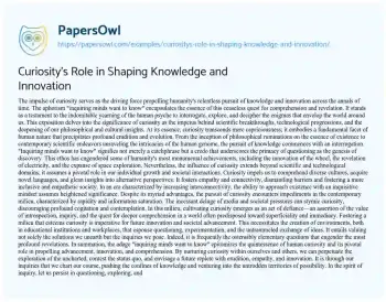 Curiosity's Role in Shaping Knowledge and Innovation. (2024, Apr 01). Retrieved from https://hub.papersowl.com/examples/curiositys-role-in-shaping-knowledge-and-innovation/
