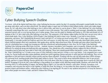 Cyber Bullying Speech Outline. (2024, Sep 17). Retrieved from https://hub.papersowl.com/examples/cyber-bullying-speech-outline/