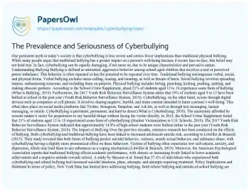 The Prevalence and Seriousness of Cyberbullying. (2019, Jul 10). Retrieved from https://hub.papersowl.com/examples/cyberbullying-laws/
