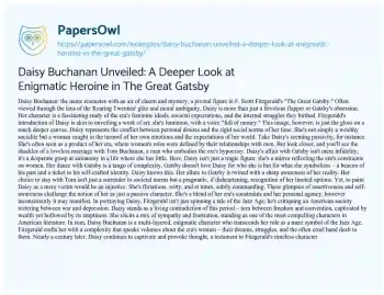 Daisy Buchanan Unveiled: A Deeper Look at Enigmatic Heroine in The Great Gatsby. (2023, Dec 15). Retrieved from https://hub.papersowl.com/examples/daisy-buchanan-unveiled-a-deeper-look-at-enigmatic-heroine-in-the-great-gatsby/