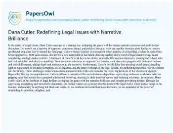 Dana Cutler: Redefining Legal Issues with Narrative Brilliance. (2024, Apr 01). Retrieved from https://hub.papersowl.com/examples/dana-cutler-redefining-legal-issues-with-narrative-brilliance/
