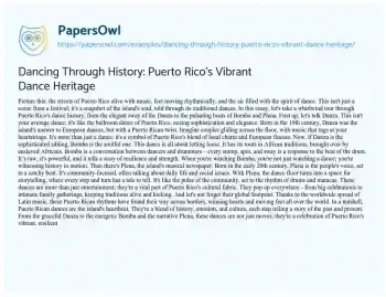 Dancing Through History: Puerto Rico's Vibrant Dance Heritage. (2023, Dec 28). Retrieved from https://hub.papersowl.com/examples/dancing-through-history-puerto-ricos-vibrant-dance-heritage/
