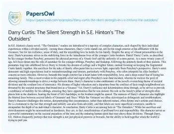 Darry Curtis: The Silent Strength in S.E. Hinton's 'The Outsiders'. (2023, Oct 10). Retrieved from https://hub.papersowl.com/examples/darry-curtis-the-silent-strength-in-s-e-hintons-the-outsiders/