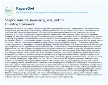 Shaping America: Awakening, War, and the Founding Framework. (2021, Mar 23). Retrieved from https://hub.papersowl.com/examples/debates-between-federalists-and-anti-federalists/