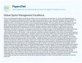 Global Sports Management Excellence. (2021, Oct 15). Retrieved from https://hub.papersowl.com/examples/decade-sports-strategies-for-industry-success/