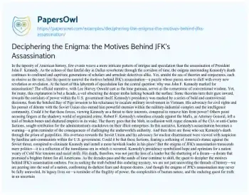 Deciphering the Enigma: the Motives Behind JFK's Assassination. (2024, May 12). Retrieved from https://hub.papersowl.com/examples/deciphering-the-enigma-the-motives-behind-jfks-assassination/