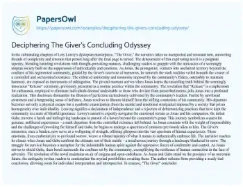 Deciphering The Giver's Concluding Odyssey. (2024, Mar 01). Retrieved from https://hub.papersowl.com/examples/deciphering-the-givers-concluding-odyssey/