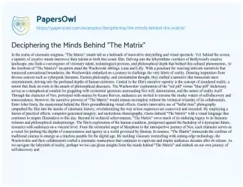 Deciphering the Minds Behind "The Matrix". (2024, Jun 17). Retrieved from https://hub.papersowl.com/examples/deciphering-the-minds-behind-the-matrix/