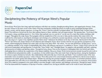 Deciphering the Potency of Kanye West's Popular Music. (2024, Feb 27). Retrieved from https://hub.papersowl.com/examples/deciphering-the-potency-of-kanye-wests-popular-music/