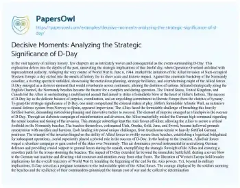Decisive Moments: Analyzing the Strategic Significance of D-Day. (2024, Mar 12). Retrieved from https://hub.papersowl.com/examples/decisive-moments-analyzing-the-strategic-significance-of-d-day/