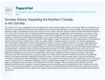 Decisive Victory: Unpacking the Northern Triumph in the Civil War. (2024, Jan 26). Retrieved from https://hub.papersowl.com/examples/decisive-victory-unpacking-the-northern-triumph-in-the-civil-war/