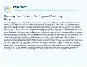 Decoding Ford's Decision: The Enigma of Pardoning Nixon. (2024, Jul 06). Retrieved from https://hub.papersowl.com/examples/decoding-fords-decision-the-enigma-of-pardoning-nixon/