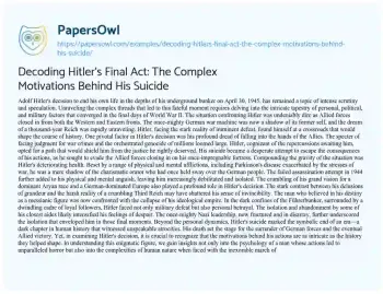 Decoding Hitler's Final Act: The Complex Motivations Behind His Suicide. (2024, Mar 01). Retrieved from https://hub.papersowl.com/examples/decoding-hitlers-final-act-the-complex-motivations-behind-his-suicide/