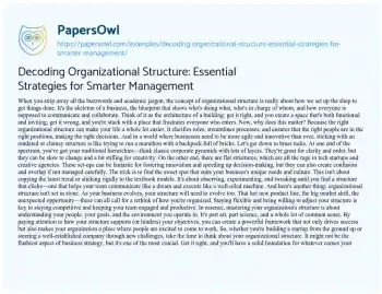 Decoding Organizational Structure: Essential Strategies for Smarter Management. (2024, Mar 01). Retrieved from https://hub.papersowl.com/examples/decoding-organizational-structure-essential-strategies-for-smarter-management/