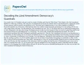 Decoding the 22nd Amendment: Democracy's Guardrails. (2024, Feb 20). Retrieved from https://hub.papersowl.com/examples/decoding-the-22nd-amendment-democracys-guardrails/