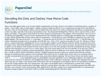 Decoding the Dots and Dashes: How Morse Code Functions. (2024, May 12). Retrieved from https://hub.papersowl.com/examples/decoding-the-dots-and-dashes-how-morse-code-functions/