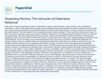 Deepening Memory: The Intricacies of Elaborative Rehearsal. (2023, Oct 10). Retrieved from https://hub.papersowl.com/examples/deepening-memory-the-intricacies-of-elaborative-rehearsal/
