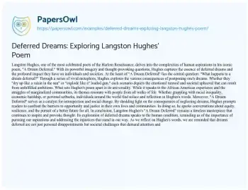 Deferred Dreams: Exploring Langston Hughes' Poem. (2024, Mar 25). Retrieved from https://hub.papersowl.com/examples/deferred-dreams-exploring-langston-hughes-poem/