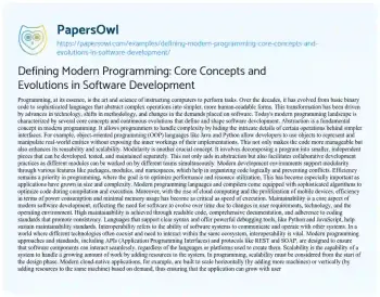 Defining Modern Programming: Core Concepts and Evolutions in Software Development. (2024, May 21). Retrieved from https://hub.papersowl.com/examples/defining-modern-programming-core-concepts-and-evolutions-in-software-development/
