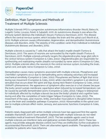 Definition, Main Symptoms and Methods of Treatment of Multiple Sclerosis. (2023, Mar 09). Retrieved from https://hub.papersowl.com/examples/definition-main-symptoms-and-methods-of-treatment-of-multiple-sclerosis/