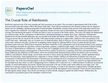 The Crucial Role of Rainforests. (2019, Dec 05). Retrieved from https://hub.papersowl.com/examples/deforestation-of-rainforests-and-the-effects-on-the-environment/