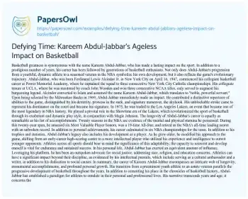 Defying Time: Kareem Abdul-Jabbar’s Ageless Impact on Basketball. (2023, Dec 01). Retrieved from https://hub.papersowl.com/examples/defying-time-kareem-abdul-jabbars-ageless-impact-on-basketball/