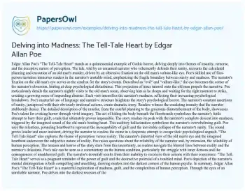 Delving into Madness: The Tell-Tale Heart by Edgar Allan Poe. (2024, Jun 28). Retrieved from https://hub.papersowl.com/examples/delving-into-madness-the-tell-tale-heart-by-edgar-allan-poe/