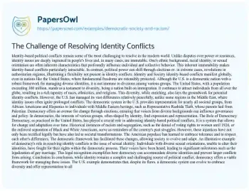 The Challenge of Resolving Identity Conflicts. (2022, Apr 12). Retrieved from https://hub.papersowl.com/examples/democratic-society-and-racism/