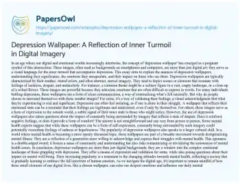 This essay explores the phenomenon of ‘depression wallpaper,’ a form of digital imagery used as backgrounds on electronic devices, reflecting the emotional state of depression. It delves into the characteristics of these wallpapers, typically marked by somber colors and imagery symbolizing isolation, despair, and melancholy. The essay discusses the reasons individuals might choose such wallpapers, highlighting them as tools for validating feelings, expressing internal turmoil, or subtly communicating one’s mental state to others. It also examines the potential impact of these images, pondering whether they offer comfort or exacerbate feelings of sadness. Furthermore, the essay touches on the broader cultural implications of depression wallpapers in the context of destigmatizing mental illness, indicating a societal shift towards openness in discussing mental health issues. However, it also cautions against the risk of romanticizing or trivializing serious mental health conditions. Overall, the essay presents depression wallpapers as more than mere digital decorations, recognizing them as significant reflections of the complex emotional experiences of those battling depression and a symbol of changing attitudes towards mental health in the digital era. Additionally, PapersOwl presents more free essays samples linked to Depression.