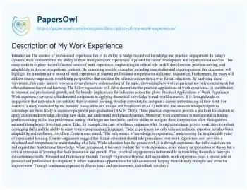 Description of My Work Experience. (2024, Dec 27). Retrieved from https://hub.papersowl.com/examples/description-of-my-work-experience/