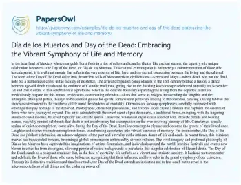 Día de los Muertos and Day of the Dead: Embracing the Vibrant Symphony of Life and Memory. (2024, Mar 12). Retrieved from https://hub.papersowl.com/examples/dia-de-los-muertos-and-day-of-the-dead-embracing-the-vibrant-symphony-of-life-and-memory/