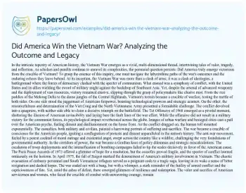 Did America Win the Vietnam War? Analyzing the Outcome and Legacy. (2024, May 21). Retrieved from https://hub.papersowl.com/examples/did-america-win-the-vietnam-war-analyzing-the-outcome-and-legacy/