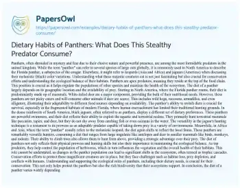 Dietary Habits of Panthers: What Does This Stealthy Predator Consume?. (2024, May 12). Retrieved from https://hub.papersowl.com/examples/dietary-habits-of-panthers-what-does-this-stealthy-predator-consume/