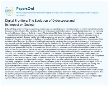 Digital Frontiers: The Evolution of Cyberspace and Its Impact on Society. (2024, Mar 12). Retrieved from https://hub.papersowl.com/examples/digital-frontiers-the-evolution-of-cyberspace-and-its-impact-on-society/
