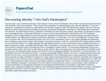 Discovering Identity: "I Am God's Masterpiece". (2025, Mar 27). Retrieved from https://hub.papersowl.com/examples/discovering-identity-i-am-gods-masterpiece/