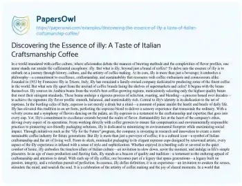 Discovering the Essence of illy: A Taste of Italian Craftsmanship Coffee. (2024, Mar 25). Retrieved from https://hub.papersowl.com/examples/discovering-the-essence-of-illy-a-taste-of-italian-craftsmanship-coffee/