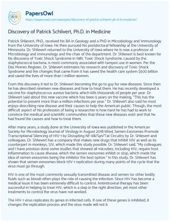 Discovery of Patrick Schlivert, Ph.D. in Medicine. (2022, Jun 29). Retrieved from https://hub.papersowl.com/examples/discovery-of-patrick-schlivert-ph-d-in-medicine/
