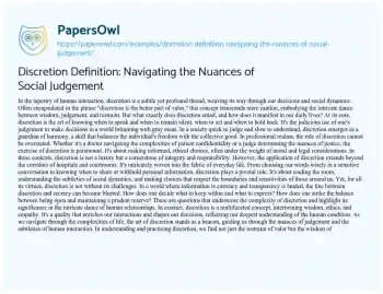 Discretion Definition: Navigating the Nuances of Social Judgement. (2024, Jan 26). Retrieved from https://hub.papersowl.com/examples/discretion-definition-navigating-the-nuances-of-social-judgement/