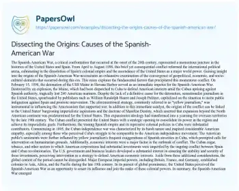 Dissecting the Origins: Causes of the Spanish-American War. (2023, Nov 24). Retrieved from https://hub.papersowl.com/examples/dissecting-the-origins-causes-of-the-spanish-american-war/
