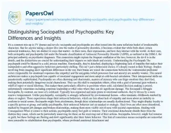 Distinguishing Sociopaths and Psychopaths: Key Differences and Insights. (2024, May 12). Retrieved from https://hub.papersowl.com/examples/distinguishing-sociopaths-and-psychopaths-key-differences-and-insights/